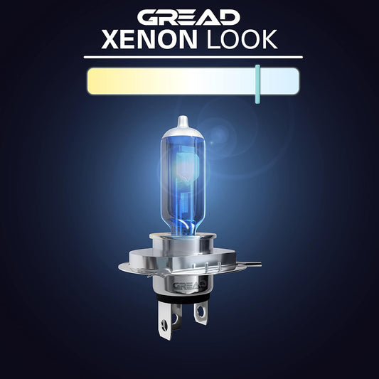 Gread - H4 Lampe Auto H4 12V 55W - super-white - Abblendlicht 8500k E-Prüfzeichen eintragungsfrei - Xenon Optik - 2 Stück