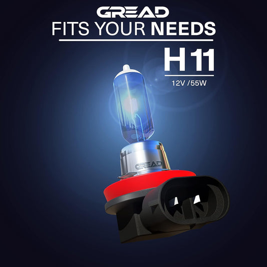 Gread - H11 Lampe Auto H11 12V 55W - super-white - Scheinwerferbirne 8500k E-Prüfzeichen eintragungsfrei - Xenon Optik - 2 Stück